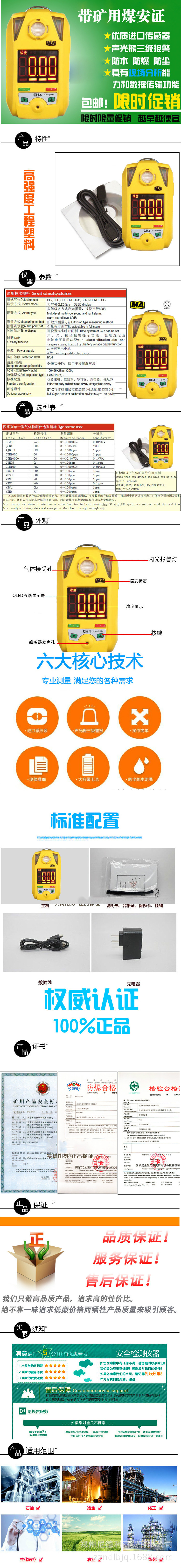 产品详情:该便携式氨气浓度检测器气体用以煤矿和其他地方,并具有煤炭安全证书!