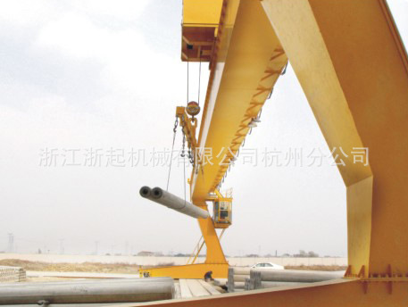 门式起重机是桥式起重机的变体,在港口中主要用以室外货场,堆场货物和散货装卸作业,其金属构造像门形框架,在下面安装了两个支撑脚可以直接在地面轨道上走动的远光灯。主梁的两边都可以有支腿。龙门起重机具备场地利用率高,工作范围大,适应性广,通用性强的特色,普遍用以港口货场。