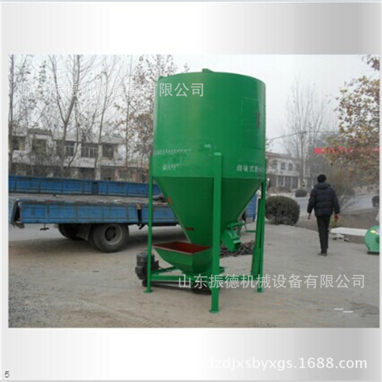 立式饲料搅拌机的工作原理:一系列的立式搅拌工作是运用螺杆的迅速旋转从桶的底部将原件从中心向顶部抬起,然后以伞状飞行并坠落然后回到底部,使原料在桶中上下滚动。搅拌,连续提升和洒水工作,可以在短时间内均匀混合大量原料。饲料搅拌机是一种小型复合饲料加工装置,专为小村饲养者,小型饲养场和中小型复合饲料工厂设计。它集成了垂直提升,混合箱和水准进料;家用混料机结构简便,连贯,可摒弃,投资少,经济实用,维修方便,无特别生产场地等;混合均匀,可以生产预混料,浓缩料,全价粉末等。