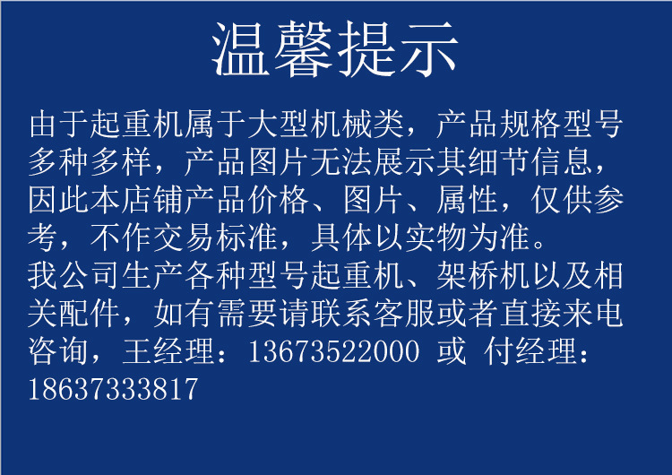 近年来,本集团根据国家发展局势的需马上调整了企业战略性,并成功开发了电动葫芦,桥式和门户式兼具与欧洲风格可比的自主知识产权的中国节能起重机。。该产品普遍用以机器和冶炼。,电力,铁路,公路,水工,港口,码头等行业。