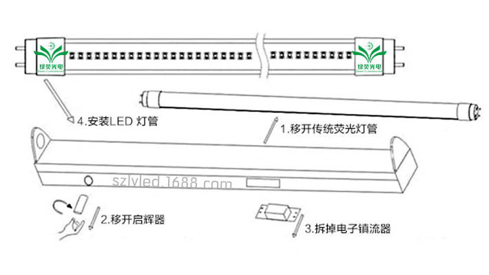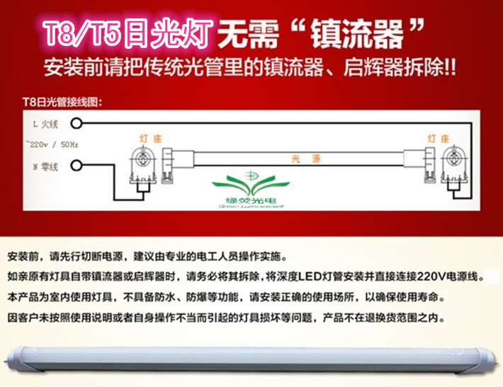 1.[led植物灯管]与支架上的启动器和镇流器不兼容,请在安装时将其卸下。