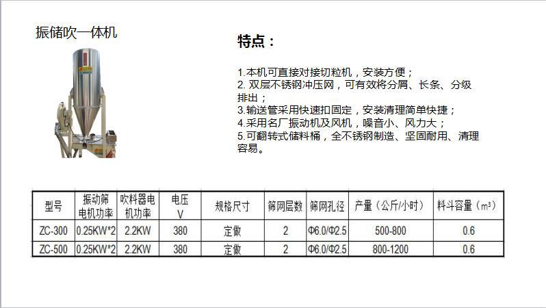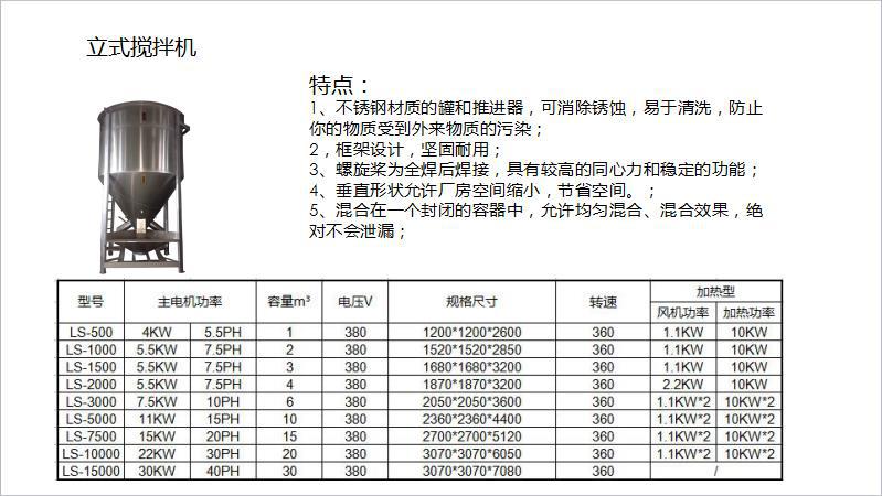 2.适用于各种塑料原料和色母的圆形混合,新,旧和色母的混合效果更好