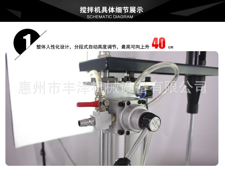 产品详情:气压自动升降式,可靠支配搅拌棒高度,更换搅拌器皿便利快捷,工作效率高,安全!本机防爆,