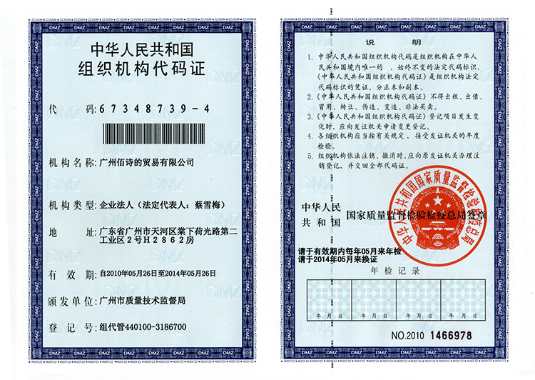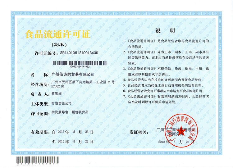 - 卫生许可证赣卫食证字【2008】第360722-100016号