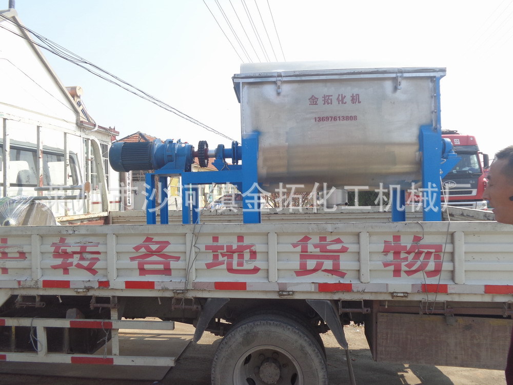 卧式螺带mixer普遍用以腻子膏,真石漆,干粉,油灰,药物,食品,化学药物,饲料,陶瓷,耐火材料,固体固体(即粉末和粉末),固体浆料(即粉末和胶浆的混合,特别适合于粘性物料的混合。本机不适用于纤维含量大,密度差大的物料的混合。腻子膏,真石漆,生物体,医药,食品等行业,不锈钢一般状况下,提议将含玻璃化微球的干粉砂浆混合,采用卧式螺带混合机,电机和混合主轴通过摆线针轮减速机直接连结,构造简便,运行可靠性高,维护便捷。
