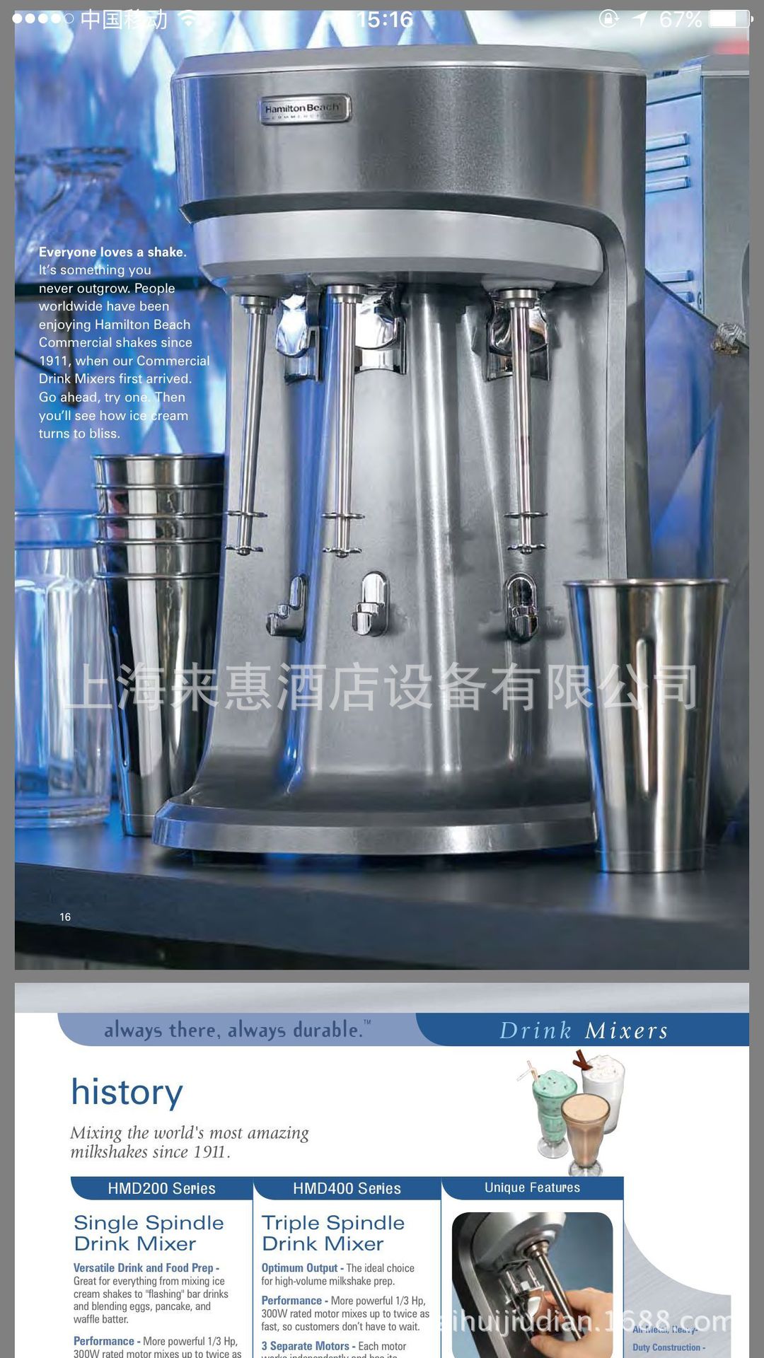 产品详情:美国咸美顿HamiltonBeachHMD-400贸易三头奶昔机奶茶mixer