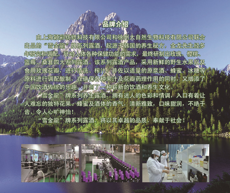 徐州大自然生物科技有限公司是一家专门从事露酒等产品的生产和加工的公司,并持有完整科学的质量管理体系。徐州大自然生物科技有限公司的诚信,实力和产品质量取得业界的认可,欢迎各界朋友光临各界人士参观,指导和接洽业务。