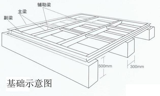 1,根据水箱的尺寸预制水箱的基础平台,根据水箱的尺寸预制水箱的长,宽;预制高度为500mm;宽度为300mm;