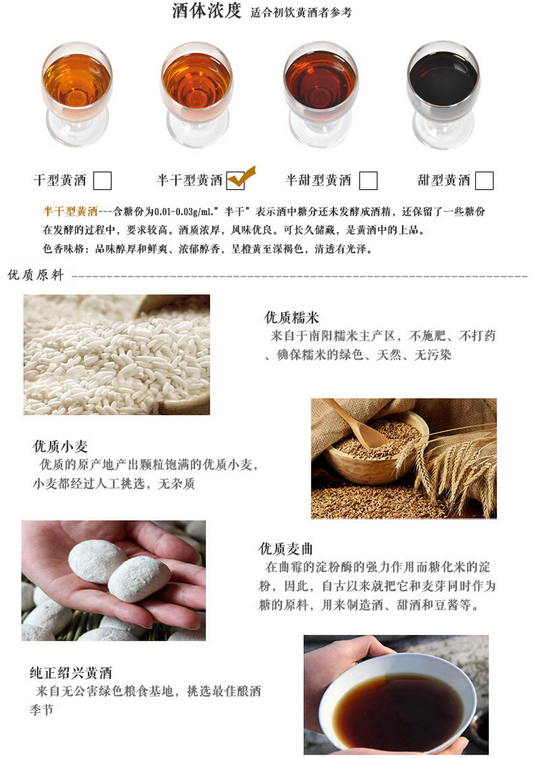 - 原料与配料糯米黄酒