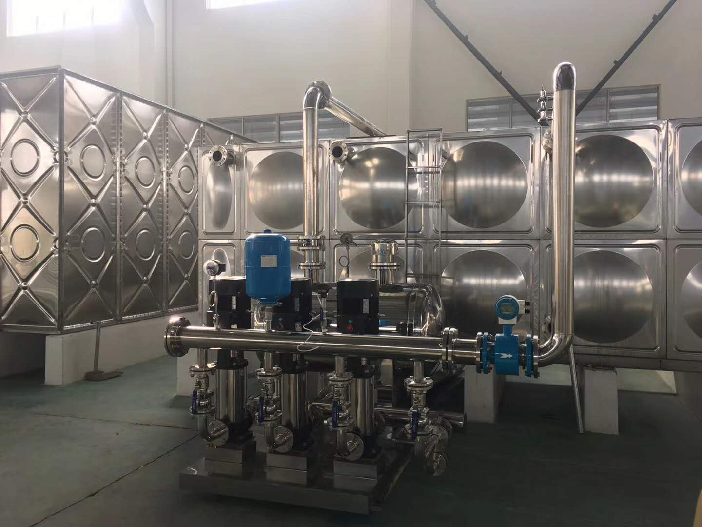 消防水箱是指在消防和救援活动中为消防队提供水源的消防设备。一方面,给水管道注满水,节约了消防水泵敞开后的注水时间,也为灭火提供了时间;另一方面,增压稳压系统屋顶上设立的水箱可确保消防水枪有足够的水柱,这对于初期灭火的胜败至关最主要。