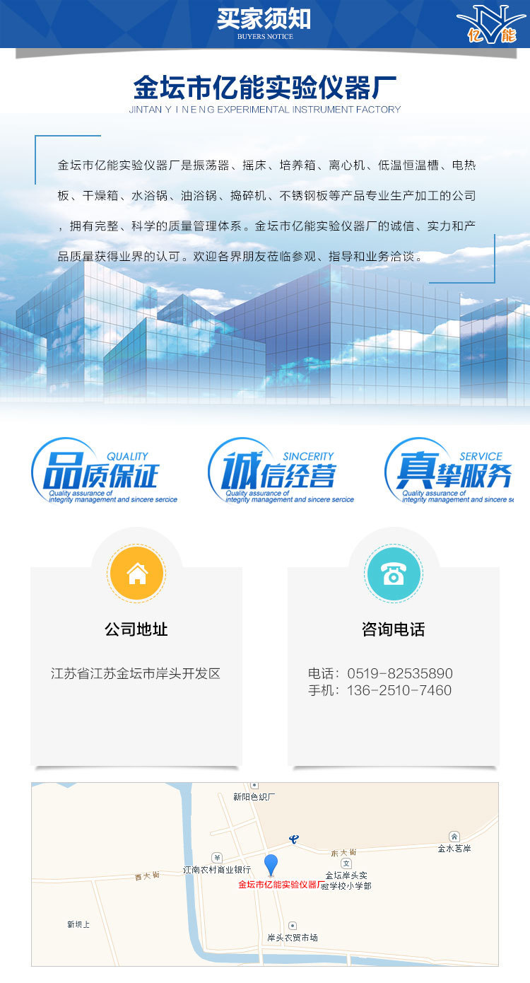 金坛市亿能实验仪器厂是一家专业生产和加工产品的公司,例如振荡器,振动筛,培养箱,离心机,低温恒温器,电加热板,干燥箱,水浴锅,油浴,捣碎机,不锈钢板等,具完整科学的质量管理体系。金坛市亿能实验仪器厂的诚信,实力和产品质量获得业界的认可。欢迎各界朋友光临,指导和接洽业务。