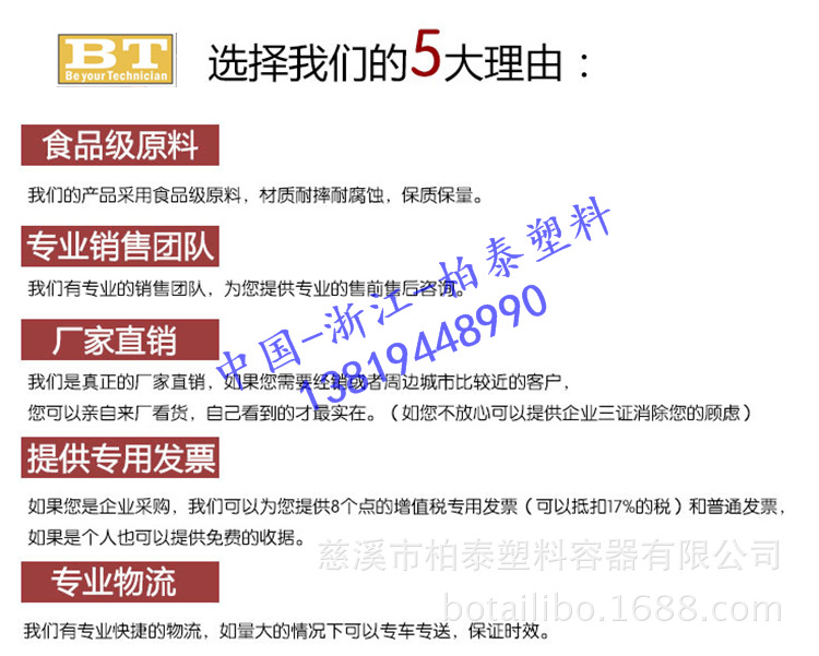柏泰容器公司是一家从事一次性大型塑料器皿成型的专业制造商,公司仰赖出色的技术和诚实守信的理念,不停将科技成果转化为生产力,开发出各种实用新颖的产品。行业包括水处理,医药和食品,电子,化工,海产养殖,纺织品印染,运输,交通安全设施,娱乐,建筑物等。