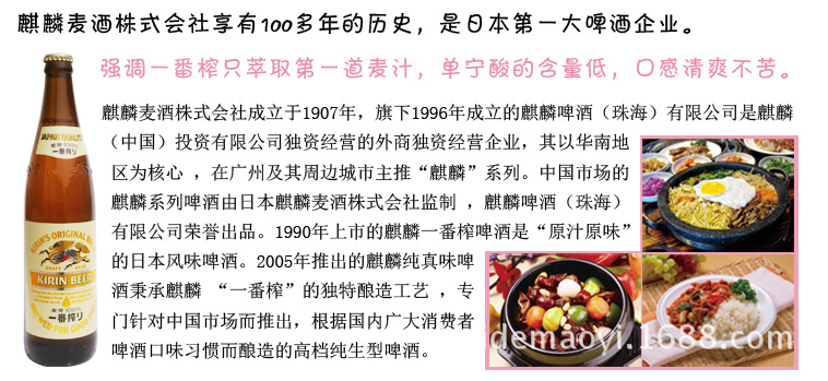 秉承日本麒麟公司精湛的“一番压”酿造工艺??1??71??1??771??1??71??1??7776??1??71??1??771??1??71??1??7777,维持日本??1??71??1??771??1??71??1??7776??1??71??1??771??1??71??1??7777啤酒的“原始风味”,犹豫不决要增加成本,只提取第一种麦芽汁开展酿造,决不混用第二种麦芽汁麦芽汁,因为第一麦芽汁中麦芽皮中渗出的涩味成份较少,所以从第一麦芽汁中酿造的第一榨啤酒并未一般而言啤酒的涩味,而且味道更纯净,更滑爽。。