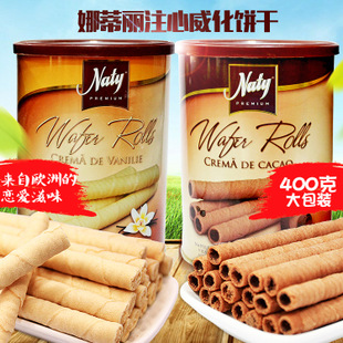 进口香草原味香心卷心酥威化饼干批发罗马尼亚食品零食400g超市供应