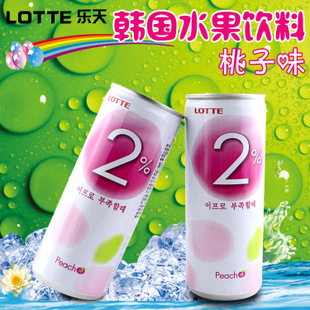 超市货源畅销乐天2%水果味桃子特色饮料240ml韩国进口果汁批发