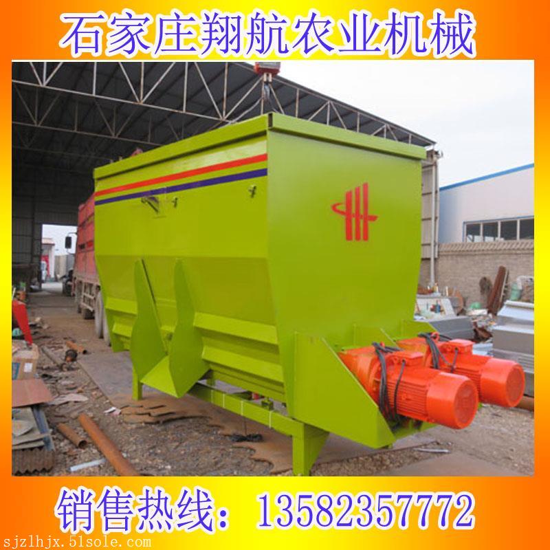 (1)卧式TMR混合机。卧式TMR混合机由2至3个卧式和平行的螺旋钻构成。优点是混合时间短(通常为6-10分钟/批),并且适合的体积质量比大,松散并且含水量相对较低。物料混合。此外,卧式TMR混合装置通常较窄且外观较低,并且兼具不错的通过性,容易装载,缺点是在加工和切割大包时效率不如立式混合机,并且在相同体积的状况下,卧式搅拌机的支撑力通常大于立式搅拌机的支撑力。