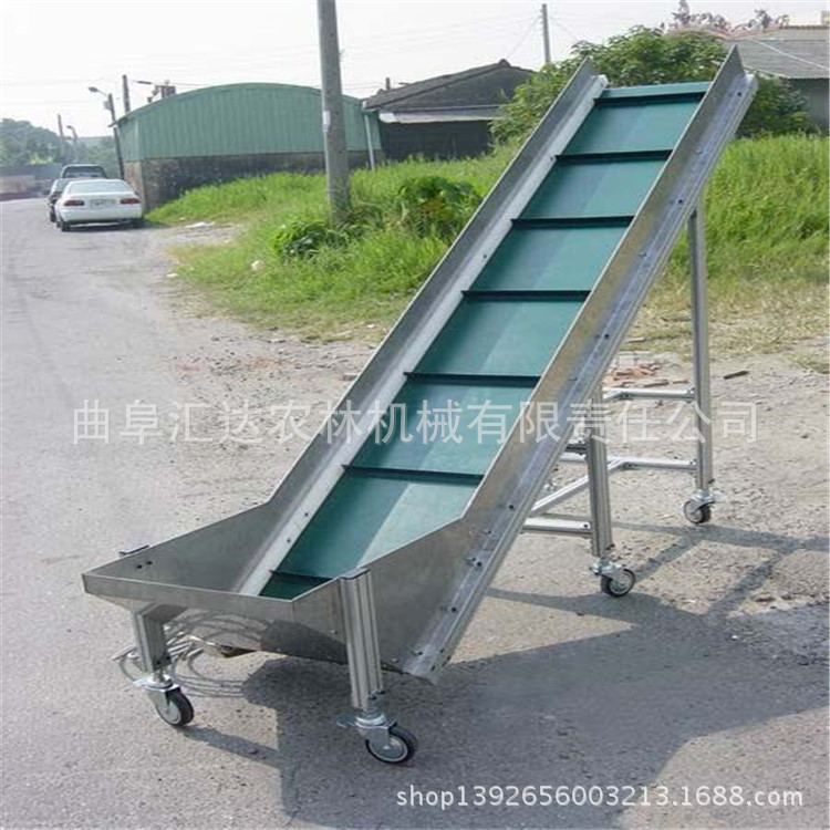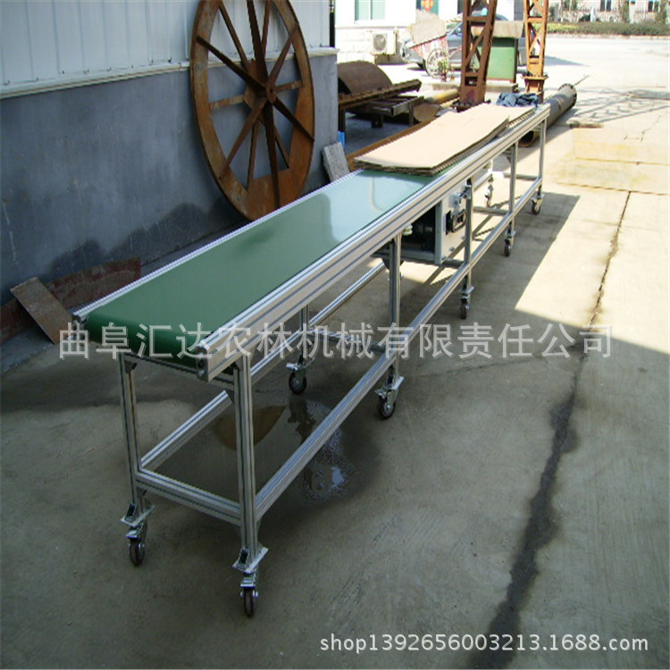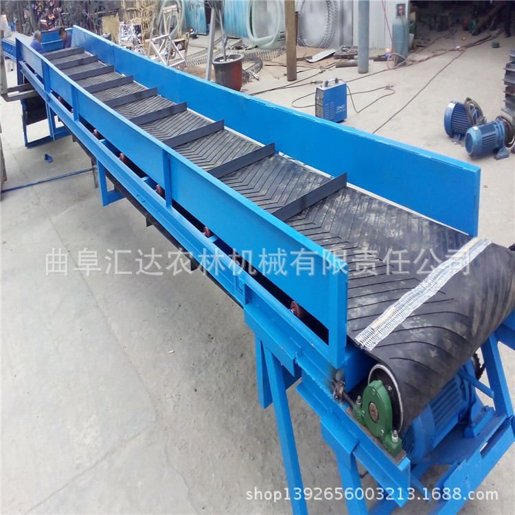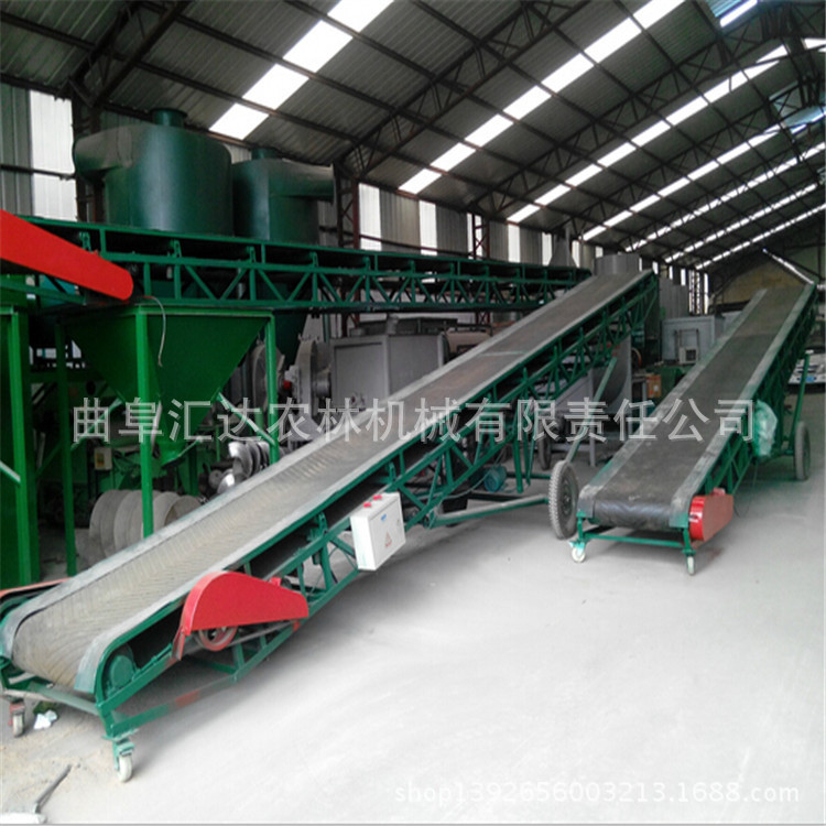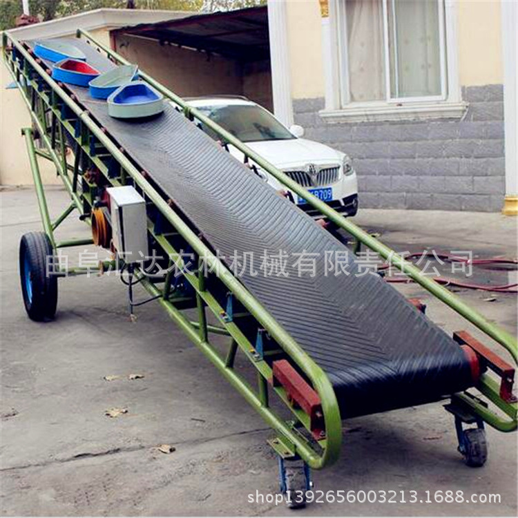 移动皮带输送机,该磁带主要兼具500、650、800mm的宽度,特别标准可以单独设计。带式输送机是一种连续运输散装物料或货物的运输装置。构造连贯,工作性能确实,运输简便。具体积大,生产效率高,操作便利的优点。它普遍用以海港,码头,车站,储藏室,堆场,工厂和矿山,用以运输煤炭,沙子,砾石,谷物,化学原材料,制成品等。输送机装备了行走轮,可以通过整个机械。输送倾斜视角可以根据具体需展开调整。最大倾斜出发点为22度。变幅部门可手动调节或电动调节。根据输送过程格局的要求,它可以是单个或多个。平台形成水准或倾斜的输送系统。