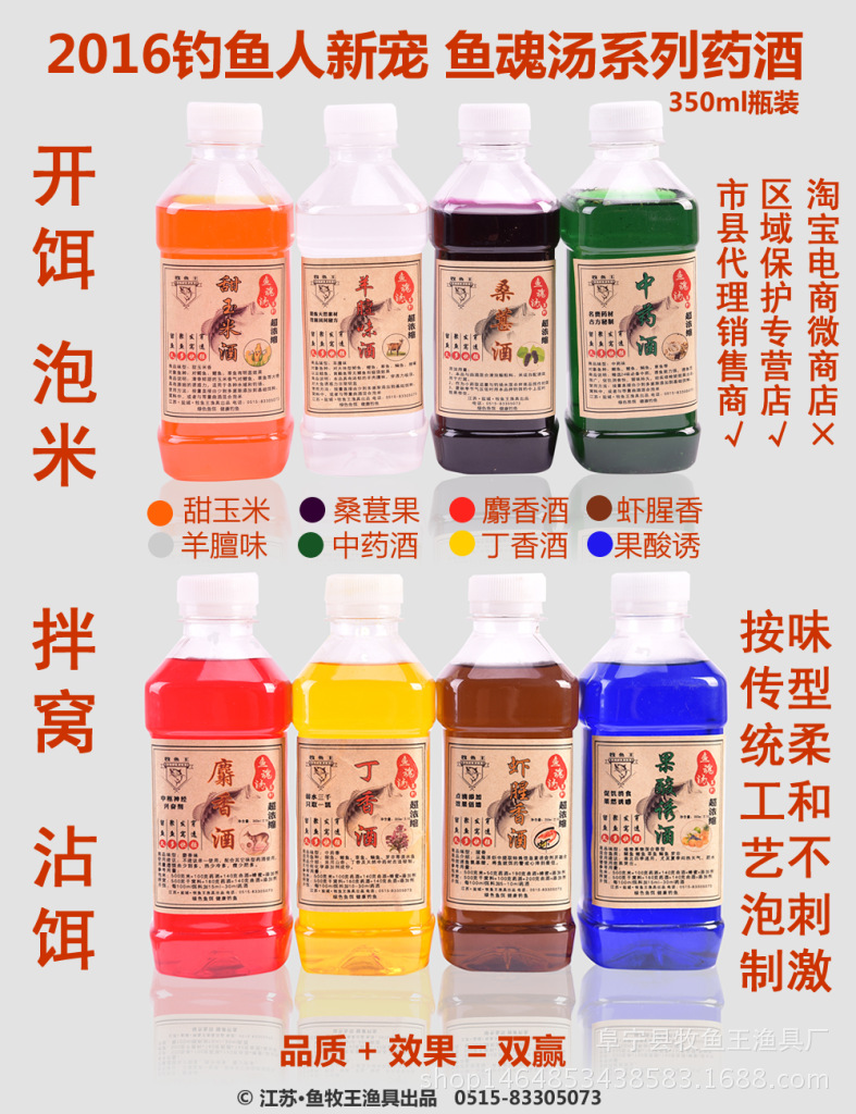 开放式诱饵:每100ml诱饵加15-30ml药酒