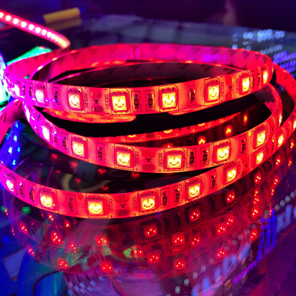 3.每米60灯,一般5m为一卷,非防水软光条的宽度为:8mm,防水宽度为10mm