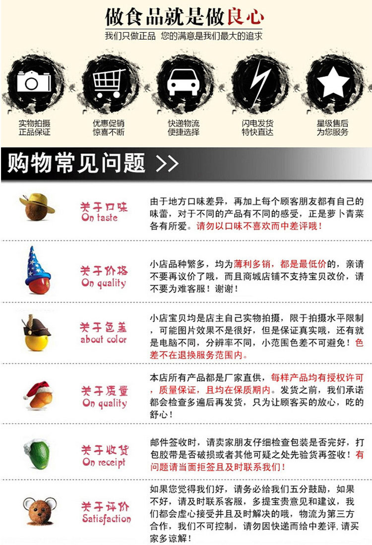 2.作为卖方,我们将一心一意对待每一笔交易,并竭力使每一位购买者令人满意。基于诚信的在线交易。我们对产品的要求和控制都非常严苛,以保证运载给您的产品及格产品,请在接到产品后尽快认定。