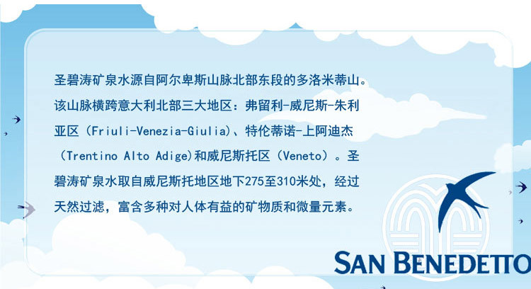 产品详情:San Benedetto圣碧涛无气天然矿泉水1.5l*6意大利进口矿泉水