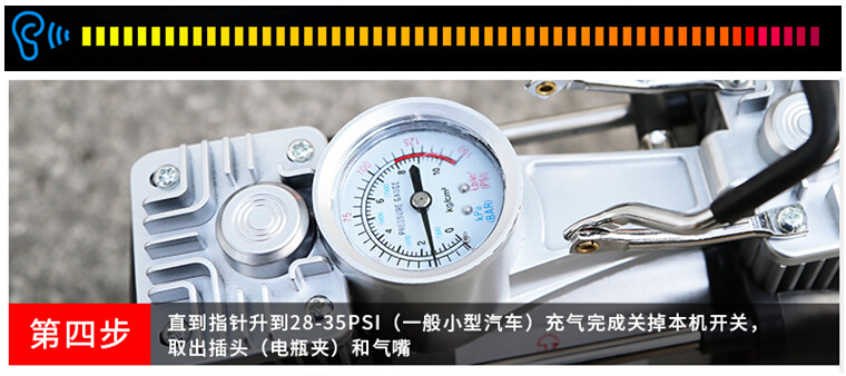 4.当轮胎压力表的指针对准恰当的轮胎压力时,请关闭电源并拔下插头和空气喷嘴