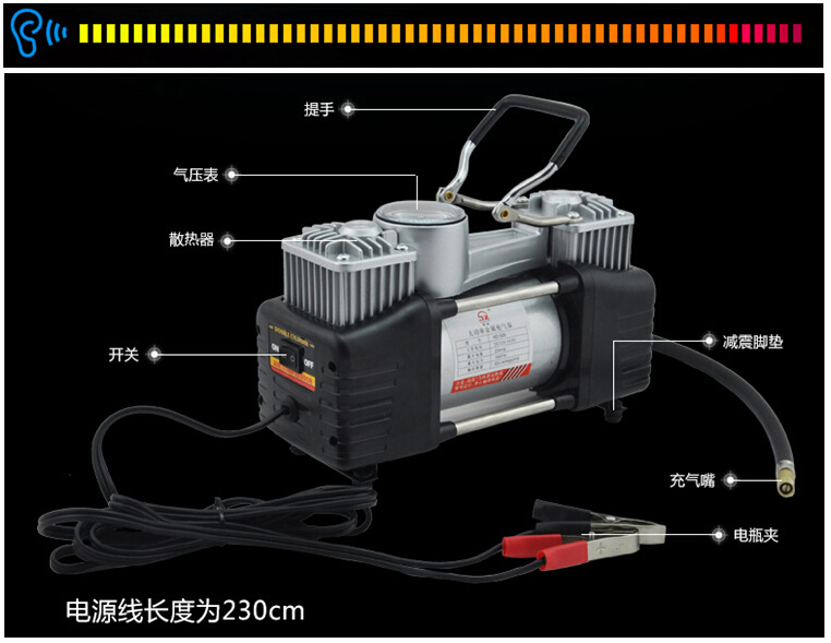 2.本机不能用以给大型和重型车(例如卡车和大型卡车等)的轮胎充气。
