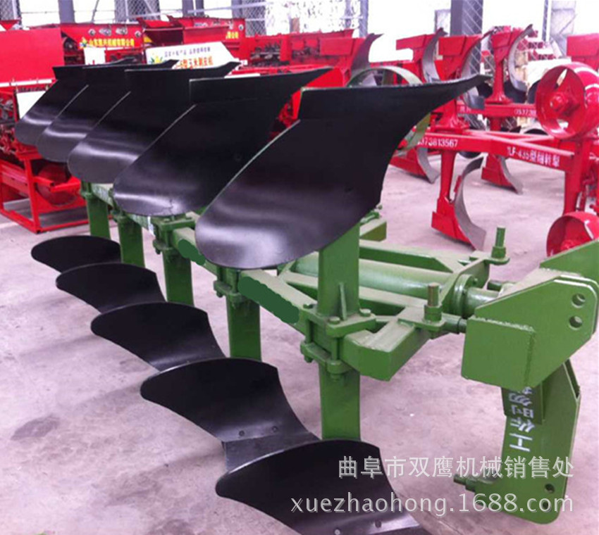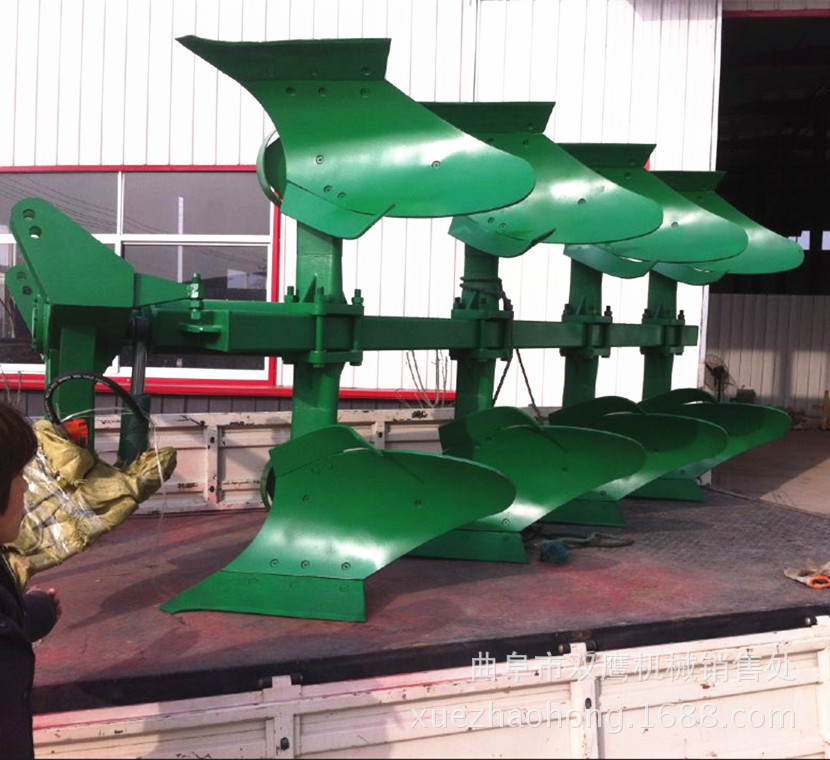 液压翻转铧式犁是在平常平犁的基本上改良的翻转nz@。犁体为上下组合型。拖拉机转弯时,采用液压缸翻转上下犁体,以便在犁过后可以转动犁体。土壤方向相同,表面平缓,可用以各种沙壤土,壤土和泥土以及土壤阻力较大的旱地和水田,耕作后地面平坦,粉碎后的土壤具有不错的覆盖性能,可以有效地将有机物和物理物质带入水渠的底部,很快腐烂,增加土壤强度,维持土壤构造质量,产品具有不错的匹配性能,可与各种家用拖拉机:使用全悬架式运行,悬架参数相符国家标准。