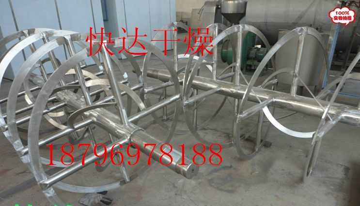 该模型由器皿,螺旋混合叶子和传动构件组成:螺旋叶子一般而言由双层或三层制成。外螺旋从两侧到中心搜集物料,内螺旋从中心的两侧输送物料以形成对流混合。