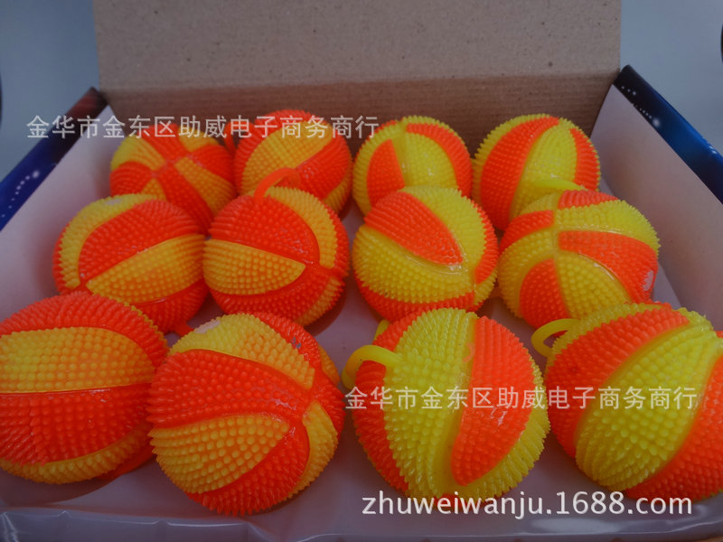 特征:篮球形状,色调艳丽,发光时变色,捏时会尖叫
