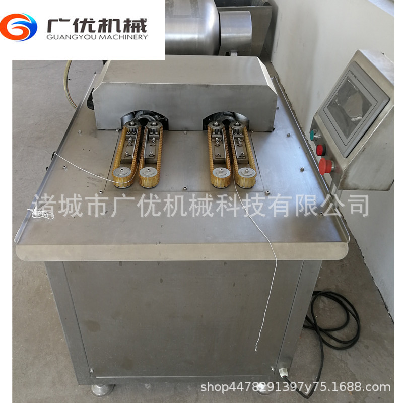 4.减轻工友的劳动强度。操作员只需将装满的肠子放入机器的喂食口,机器将自动完成香肠的喂食和结扎过程。
