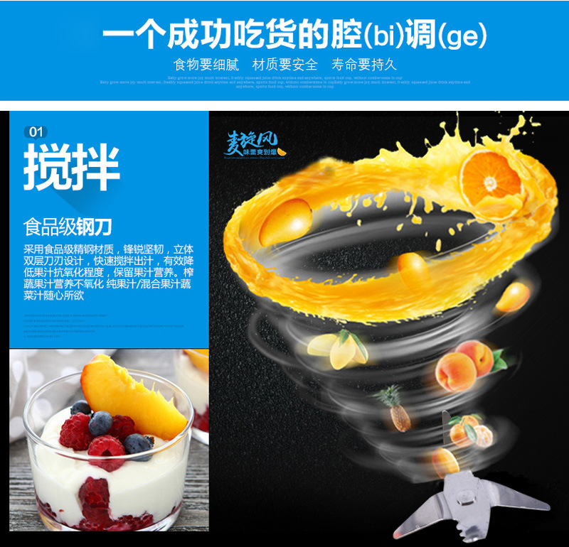 1使用时,须要将榨汁/搅拌器稳定地放在工作台上,并按照以下要求使用