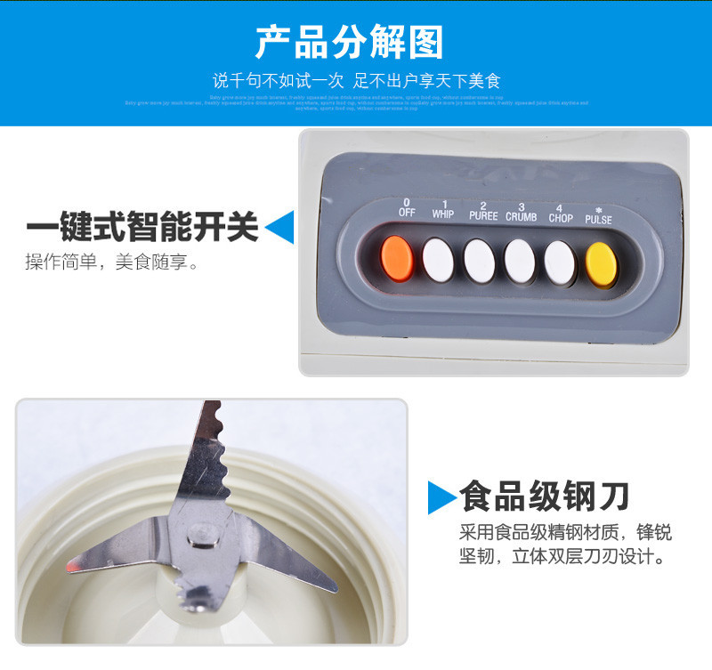 3严禁用水冲洗主机底座,使用干湿布擦拭洁净,其他部位可直接放在水中并用食品洗涤剂冲洗