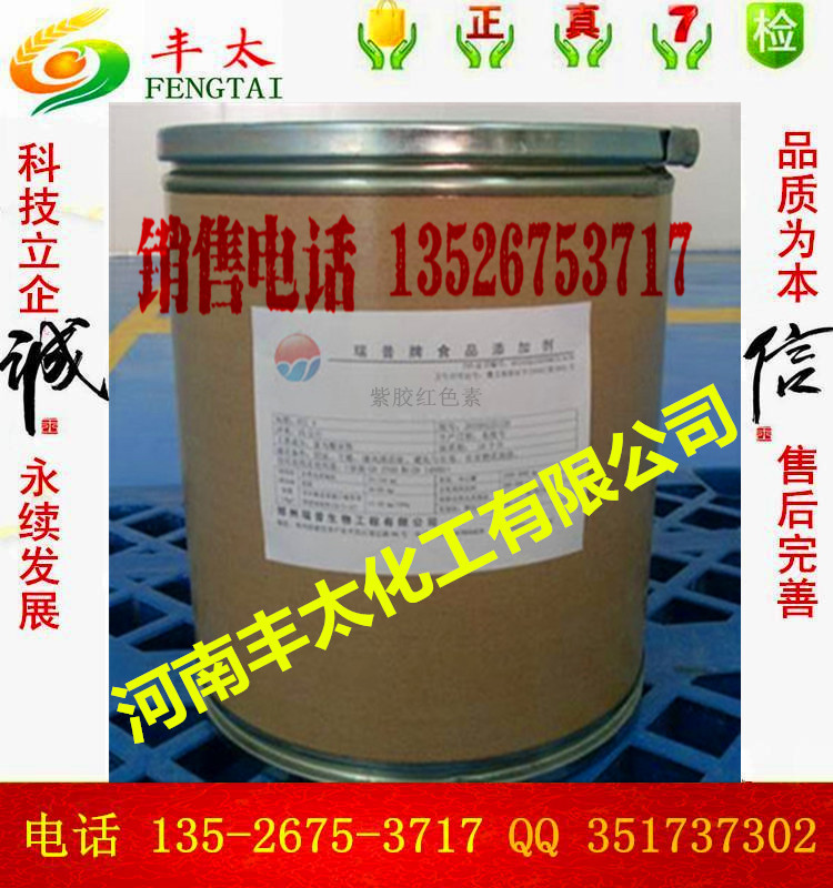 产品详情:鲜红色或紫色粉末或液体,溶于乙醇或丙二醇(约3%),微溶于水,不溶于棉籽油.20°c时的溶解度为0.0335%(水),0.916%(95%)纯度越高,在水中的溶解度越低。PH值的色相变化,当PH值低于4.0时为橙色;PH值是4.0-5.0,是橙色;PH值大于6.0,为紫色。在酸性条件下安定加热和光照,在100°c加热2h不变,PH值在窗口侧安放16d不变时为3。强碱性溶液(ph值大于12)。平稳至维生素C,几乎不褪色。遇见金属离子(尤为是10-6以上的铁离子)时,颜料变为黑色。着色性能随PH值变动