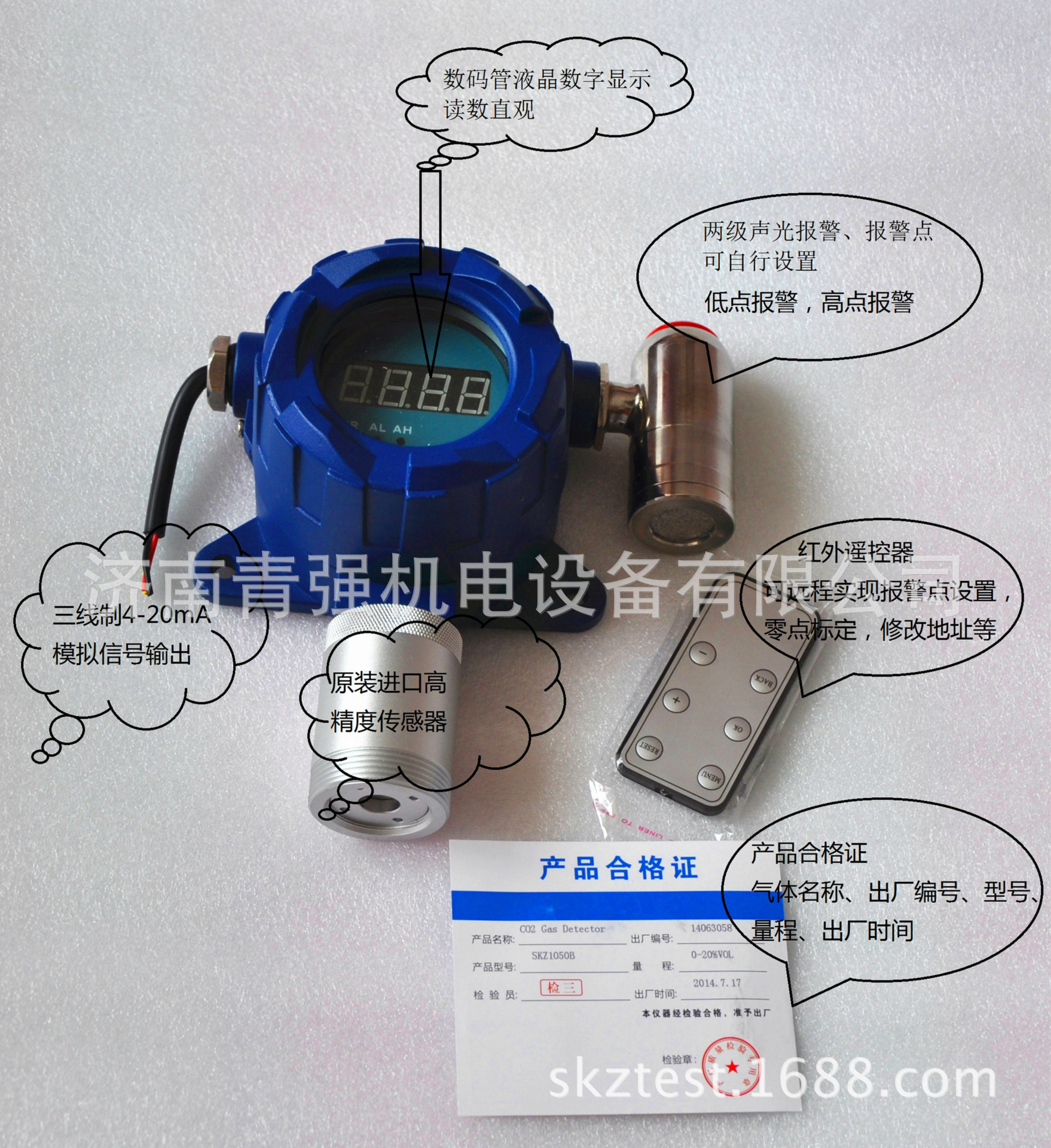 5.红外遥控功能,可远程实现报警点设置,零位校准,地址修改等功能