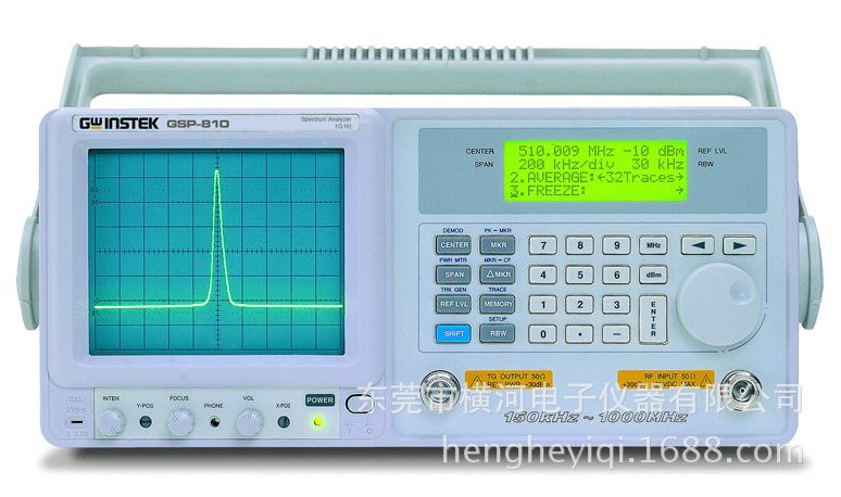 GSP-810是一种采用数字合成技术的简便易用的射频测量仪器,频率范围为1ghz。锁相系统的设计保证了测量结果的准确性和价钱合理。@具1瓦特的输入保护,可以适于各种测量环境。连贯的形状和极轻的重量使GSP- 810十分便携。通过标准化的GSP-810和RS-232C接口接口软件,可以显示频谱分析仪屏幕windows有着多种与众不同的功能和特点,使之成为经济有效性的测量仪器,可以经济地扩充。