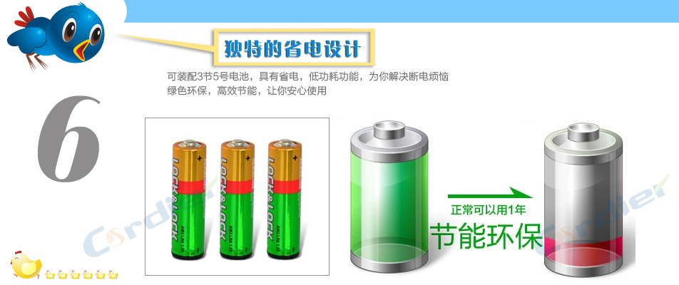 4.低功耗:3节aa电池(4.5v),如果碱性电池工作时间更长,则待机模式可以工作2年以上。
