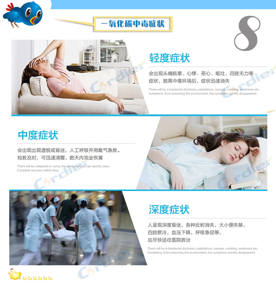 一氧化器是一种五种感官都无法感觉到的无色,无色,无味,无刺激性的气体,这就是为什么一氧化碳警报很重要的缘故,请花点时间从头到尾阅读本手册使您熟识一氧化碳的一些内容:明白警报的工作原理以及当报警时应采取的措施。然后,将本手册放在便捷的地方,以备将来有疑问时参照。