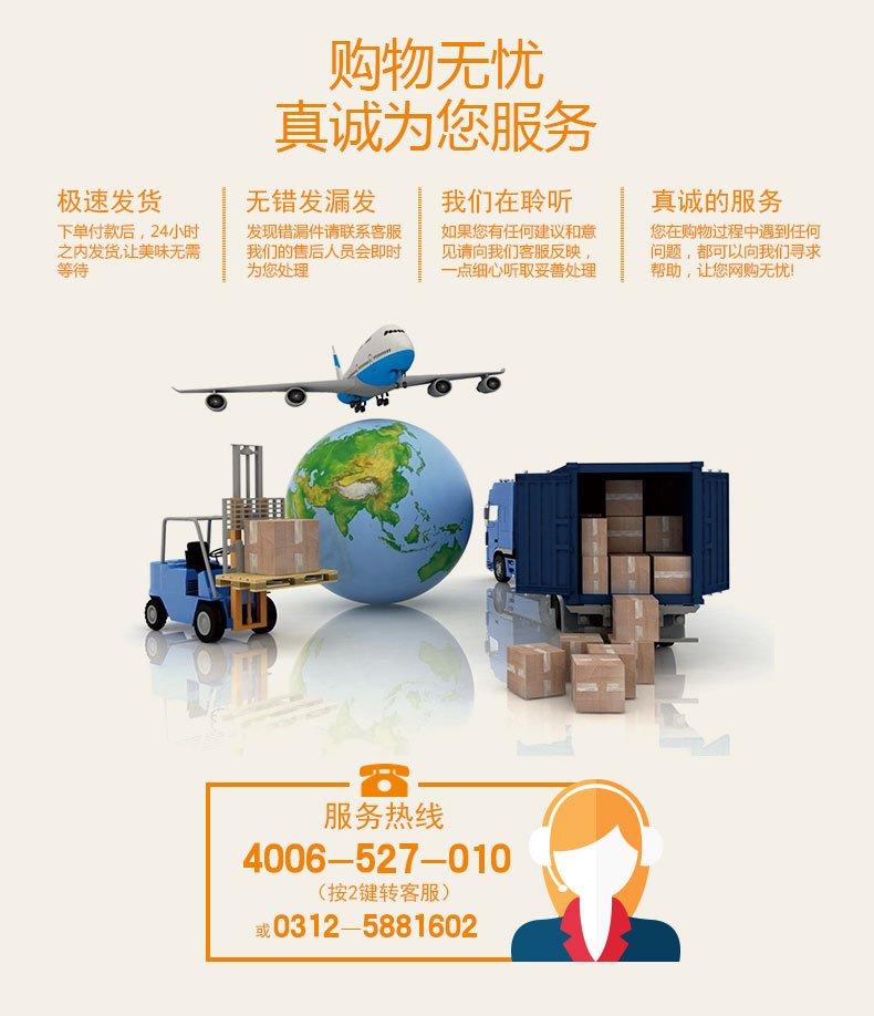 食品是物流盗窃中较为严重的货品之一,因此在收货时须要留意检查外包装是不是完整。我们只能用心包装饼干和锡罐(饮料等),但不能保证损坏或变形。如果您更顾虑此类产品的完整性,请细心下订单。我们不能保证在物流过程中货物完好。