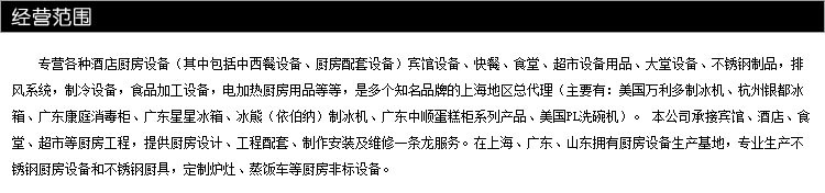 承接酒吧,旅店,餐馆,面包店,饭堂,杂货店等厨房项目,并提供厨房设计,工程支持,生产,安装和维护的一站式服务。刘经理:电话:13681810164QQ:542615747