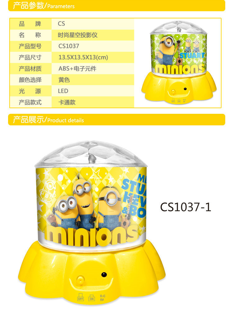 产品称谓:小黄人USB旋转星空灯