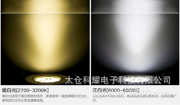 产品色温:一般而言白6000k,暖白3000k两种,光效可达95%以上