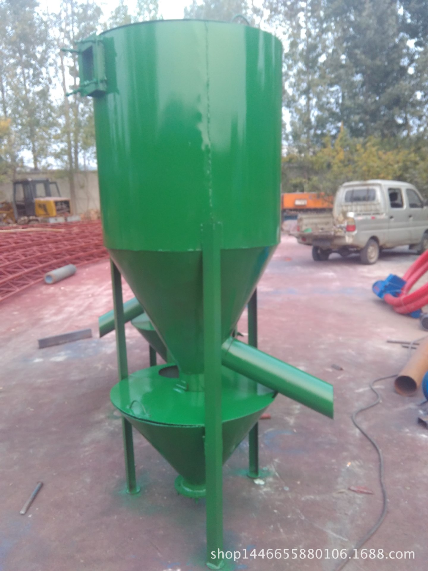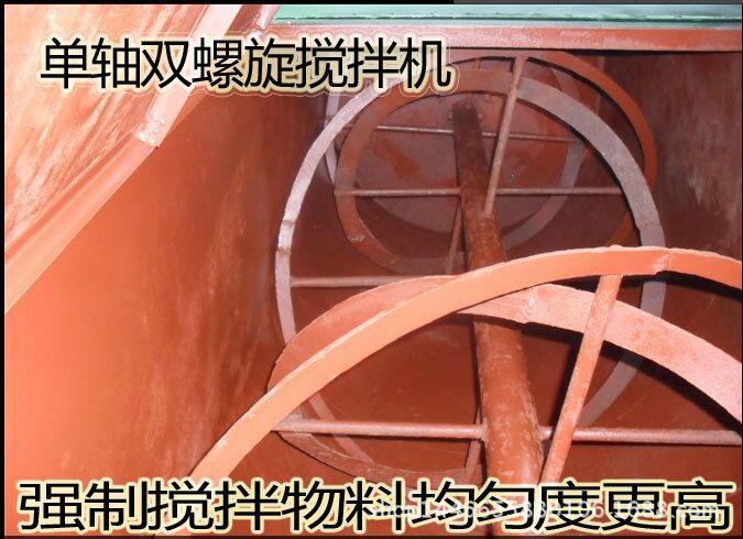 该机械是为小村饲养者,小型饲养场和中小型复合饲料工厂特别设计的小型复合饲料加工装置。这是一条双螺旋皮带卧式混合机。其机能是将各种粉末和液体均匀混合。适用范围广,混合均匀性好,物料残留少,维护方便等。是粉状物料,浓缩物料和固化的木粉生物质燃料(秸秆煤)的混合和加工必备的装置。