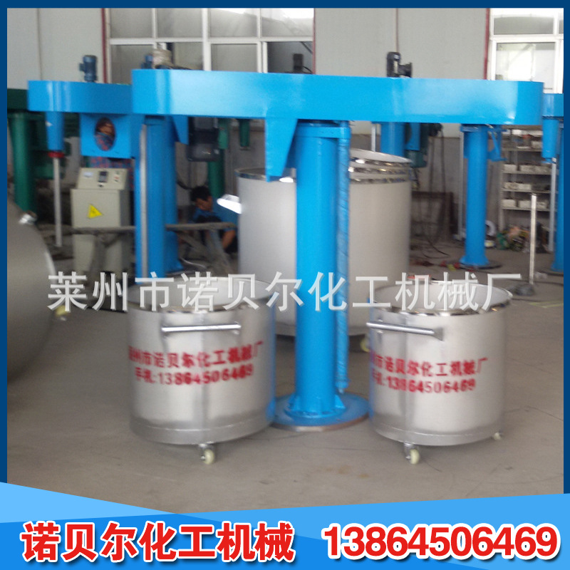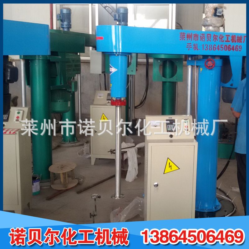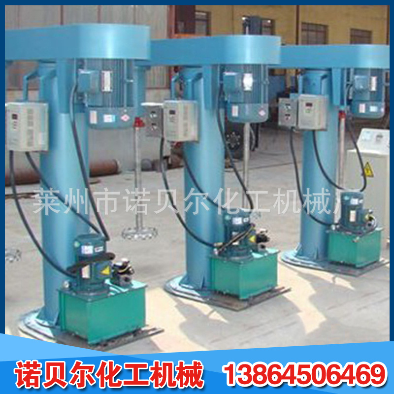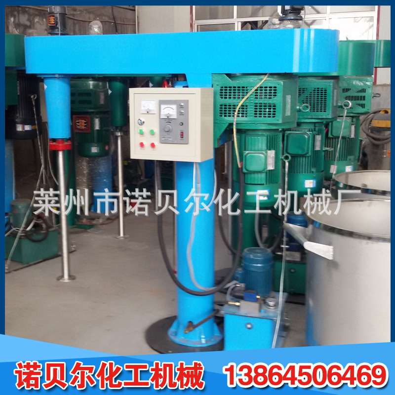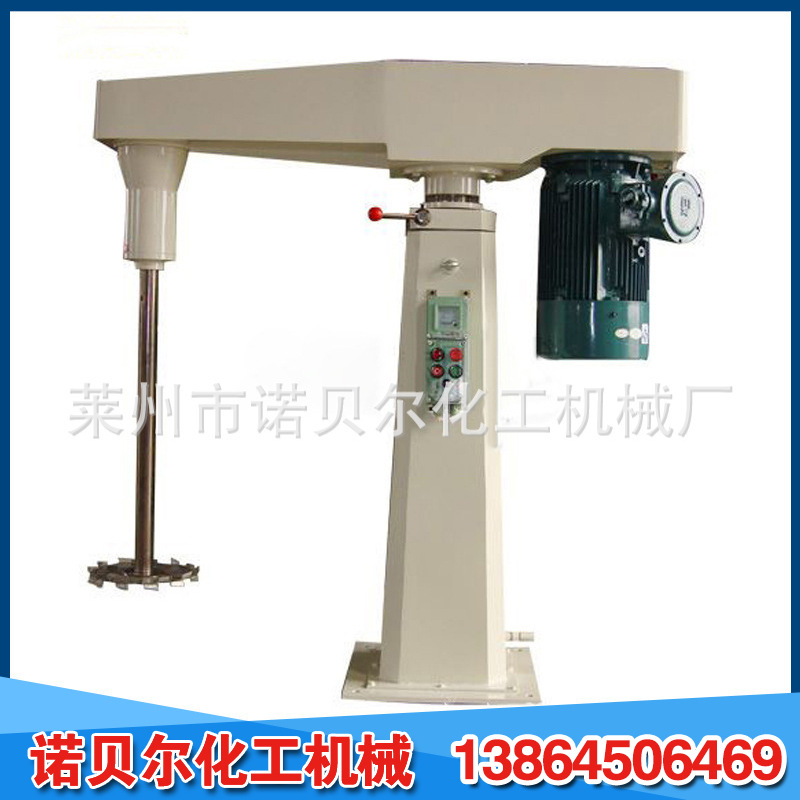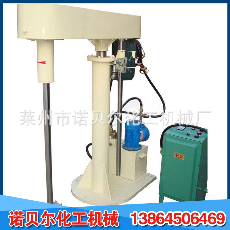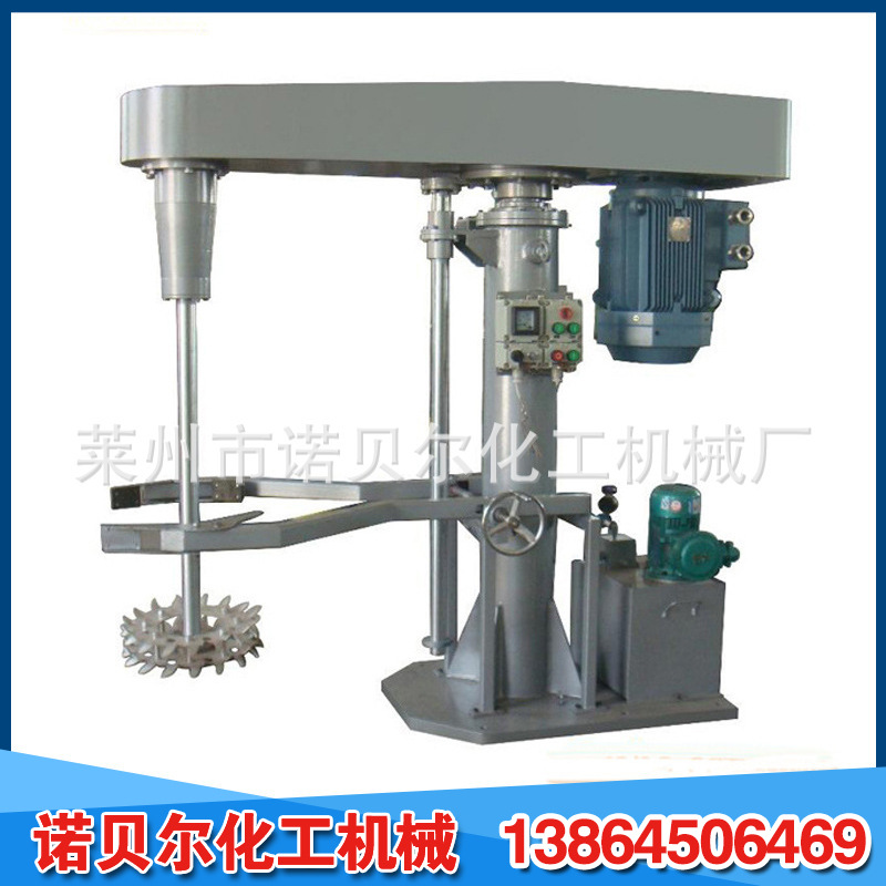 它使用电磁调速,变频调速,三速等多种规格,运行平稳强大,适用于各种粘度;液压和机器升降方法,自由升降和旋转,适于各种位置;平常防爆配置,安全确实,操作维护简便;生产连续性强,物料迅速分散和溶解,分散效果好,生产效率高,运行安定,容易安装。不同物料的粘度和加工能力有不同的功率和型号。