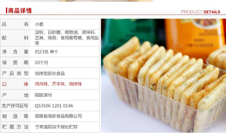 - 口味烧烤味(小包称重),鸡肉味(小包称重),番茄味(小包称重),原味(小包称重)