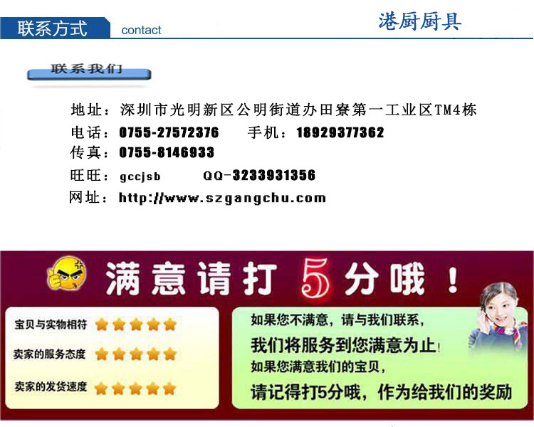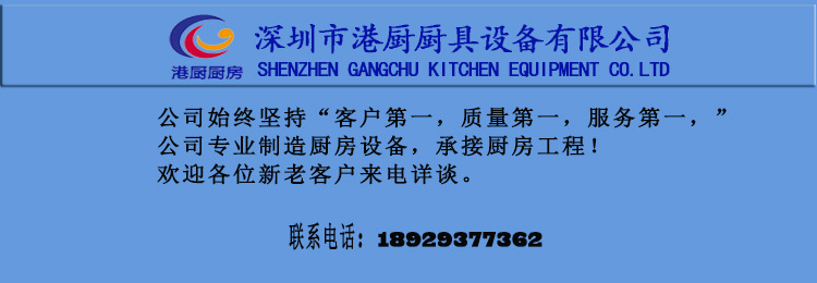 深圳市港厨厨房设备公司提供各种不锈钢厨房装置,承接厨房项目:1.例如:不锈钢大型油炸炉,不锈钢小型油炸炉,不锈钢蒸饭柜,不锈钢消毒柜,不锈钢工作台,不锈钢储物架,不锈钢星盆,不锈钢吊柜,储物柜,不锈钢油炸炉,不锈钢汤炉,不锈钢蒸柜,不锈钢餐车,不锈钢平板车等。