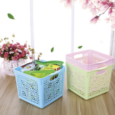 厂家批发方形彩色储物篮塑料收纳篮整理篮储物篮镂空收纳架9606