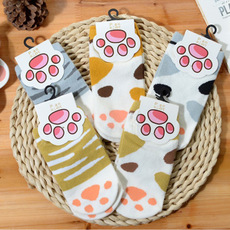韩版卡通猫爪纯棉袜子柔软女学生袜日系全棉女船袜薄款防滑B346