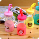 可爱的玻璃水杯带绳,创意带盖男女水瓶,带硅胶套的防烫茶杯B384