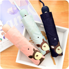 夏季韩版创意自动太阳伞防紫外光卡通太阳伞小鹿伞折叠伞0954